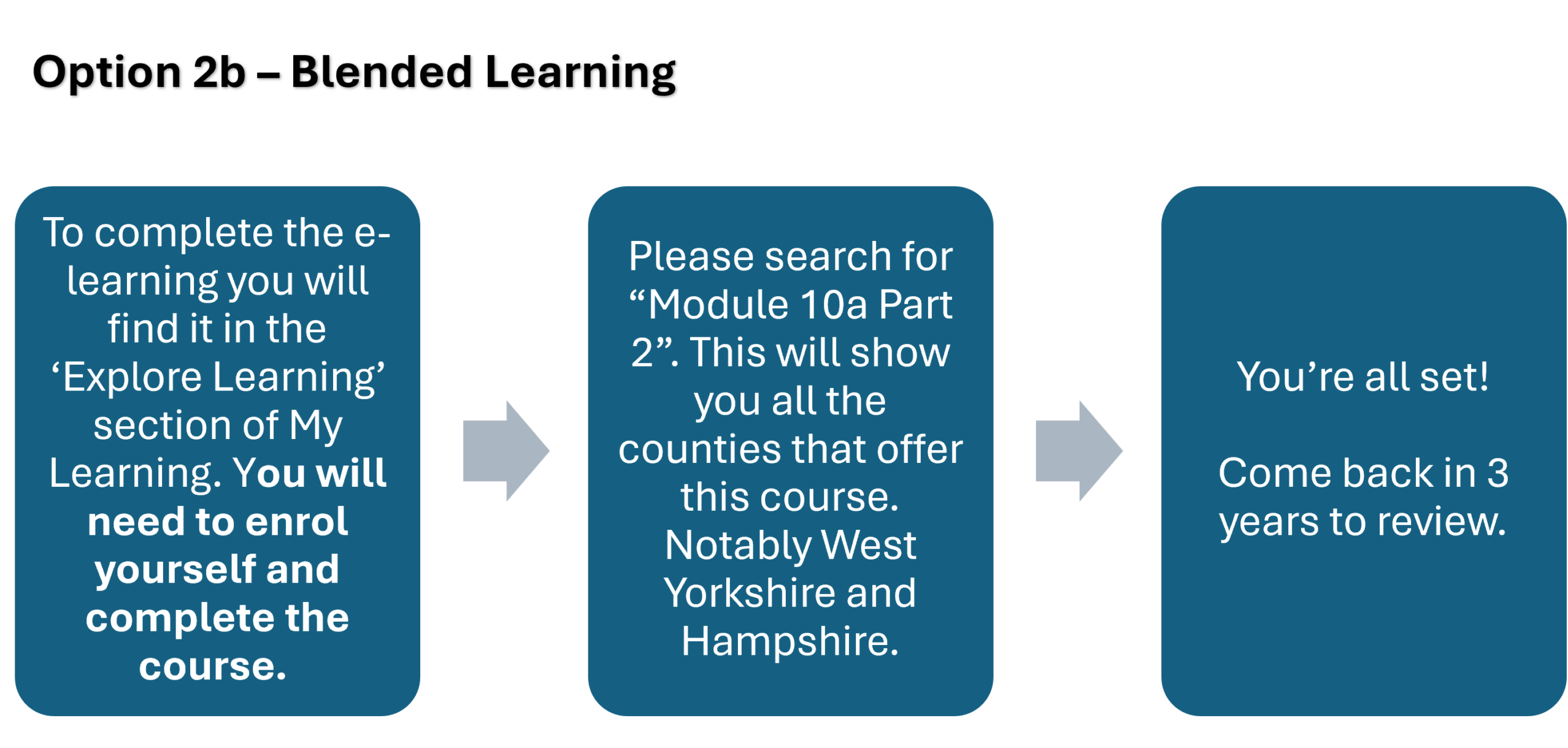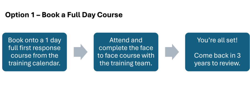 If you have done a course which does not fully meet the requirements (for example First Aid at Work), you will need to either speak to an accredited First Response trainer or complete a conversion course.